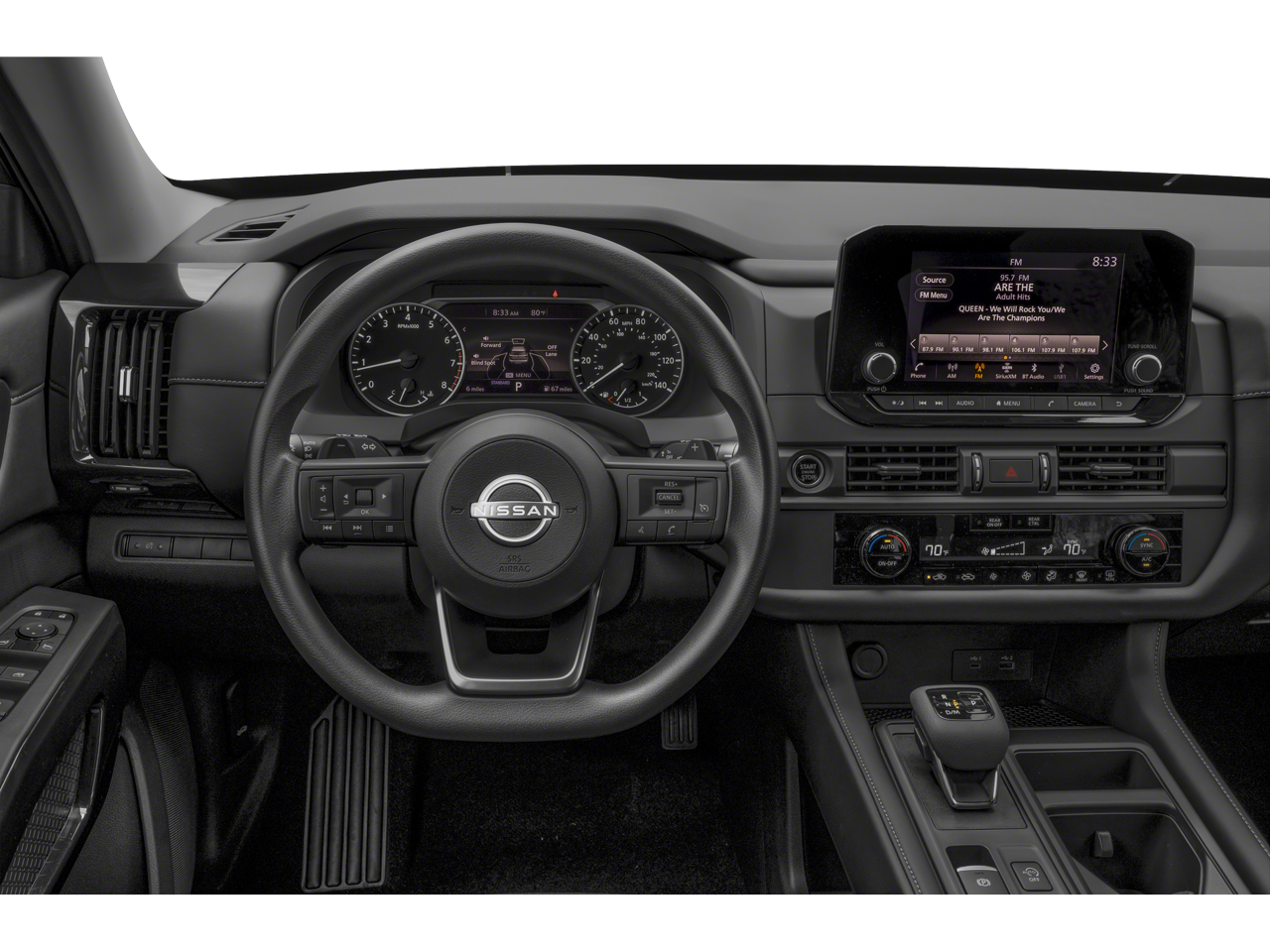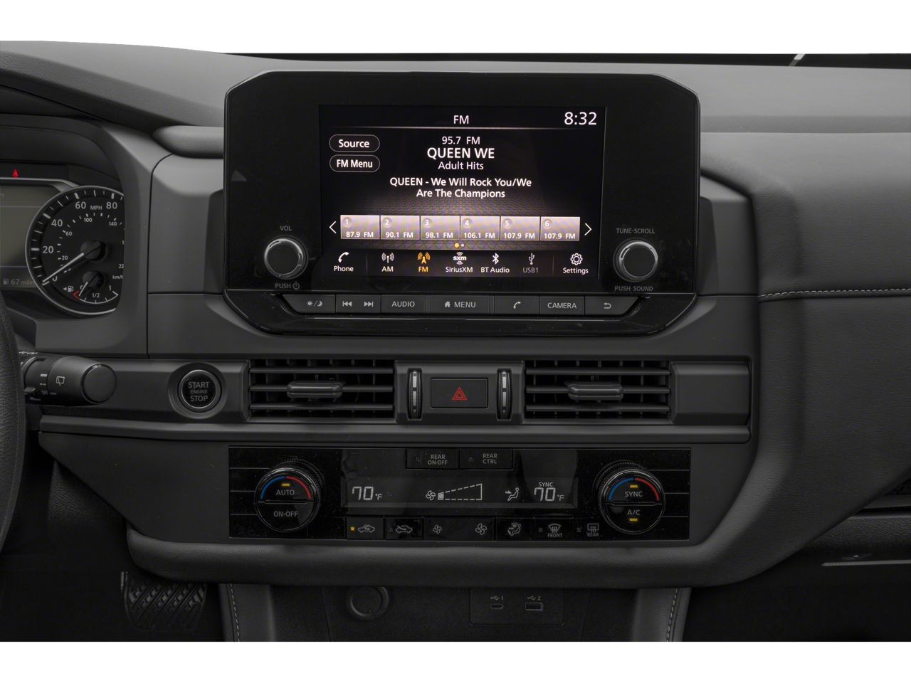 - Radio: AM/FM Audio System w/NissanConnect -inc: 6 speakers, Radio Data System (RDS), Apple CarPlay and Android Auto, 8" color display w/multi-touch control, SiriusXM satellite radio w/advanced audio features, 2 illuminated front USB connection ports (1 type A, 1 type C) for iPod interface and other compatible devices, Bluetooth® hands-free phone system and streaming audio, Speed-Sensitive Volume control (SSV), hands-free text messaging assistant and Siri Eyes-Free/Google Assistant voice recognition