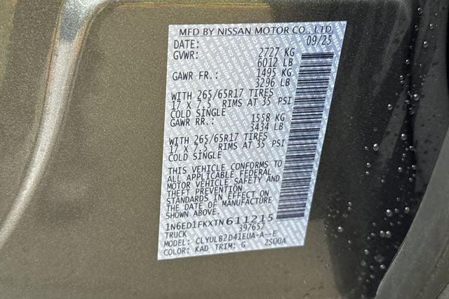 All vehicles are subject to prior sale. Price does not include applicable tax, title, license, $85 Doc fee and $33 Electronic DMV filing fee. Contact Dealer to verify if you qualify for displayed Nissan Offer. Must qualify through Nissan Motor Acceptance Corporation for applicable rebates. Not responsible for typographical errors. Nissan Offer* includes: $2500 - Nissan Customer Cash. Exp. 03/02/2026