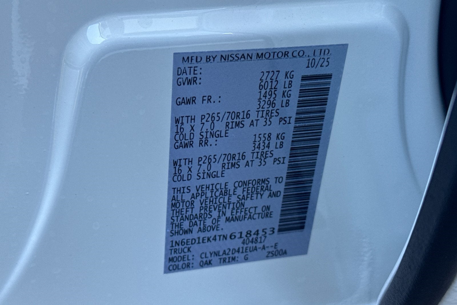 - Vehicle Name: Nissan Frontier