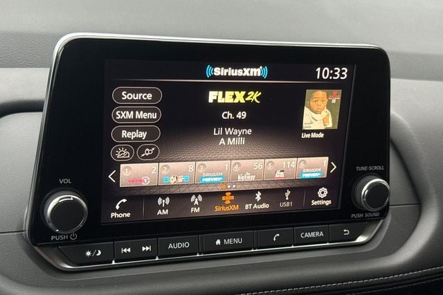 - Radio: AM/FM NissanConnect -inc: 6 speakers plus 2 tweeters, Apple CarPlay, Android Auto, 8" color touch screen display, Bluetooth®, 2 front USB type-C, Wi-Fi hotspot and NissanConnect Services powered by SiriusXM