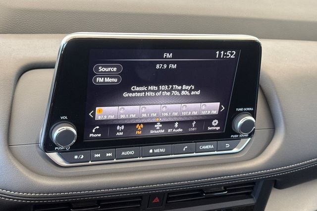 - Radio: AM/FM NissanConnect -inc: 6 speakers plus 2 tweeters, Apple CarPlay, Android Auto, 8" color touch screen display, Bluetooth®, 2 front USB type-C, Wi-Fi hotspot and NissanConnect Services powered by SiriusXM