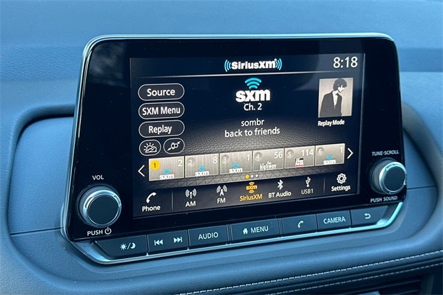 - Radio: AM/FM NissanConnect -inc: 6 speakers plus 2 tweeters, Apple CarPlay, Android Auto, 8" color touch screen display, Bluetooth®, 2 front USB type-C, Wi-Fi hotspot and NissanConnect Services powered by SiriusXM