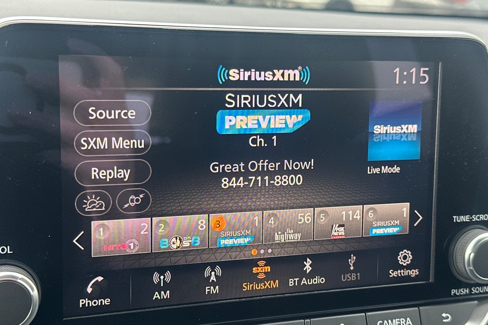 - Radio: AM/FM NissanConnect -inc: 6 speakers plus 2 tweeters, Apple CarPlay, Android Auto, 8" color touch screen display, Bluetooth®, 2 front USB type-C, Wi-Fi hotspot and NissanConnect Services powered by SiriusXM
