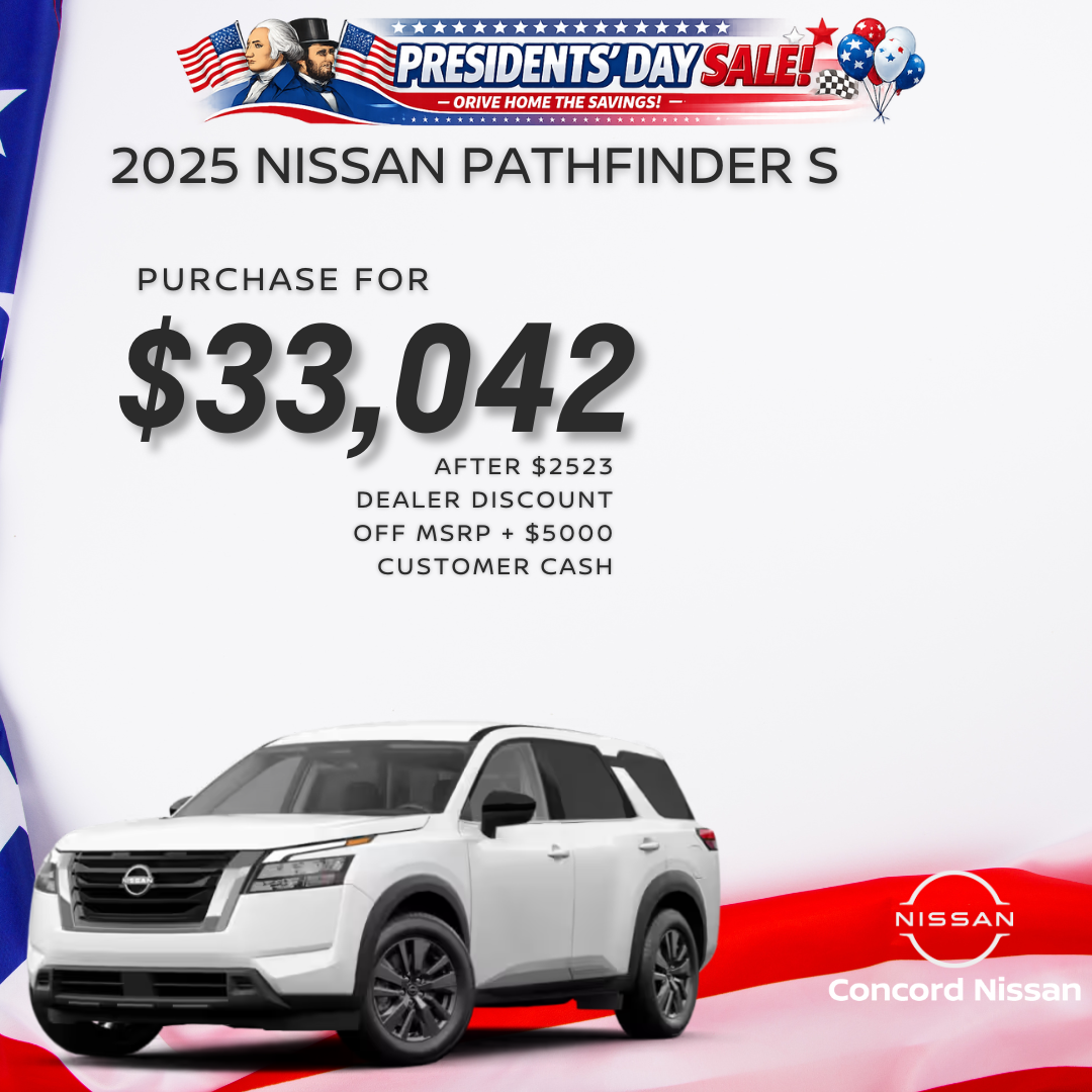 2025 NISSAN PATHFINDER S 2WD VIN: 5N1DR3AC3SC307631, MSRP of $40,565. $33,042 after $2,523 dealer discount off MSRP, $5,000 Customer Cash Rebate. $5,000 Customer Cash Rebate not combinable with NMAC Special APR 0%. All offers: Prices do not include government fees and taxes, any finance charges, $85 dealer document processing fee, $37 electronic filing fee and any emissions testing fee. Only 1 at this offer VIN: 5N1DR3AC3SC307631. See dealer for details. All offers expire 03/02/2026.