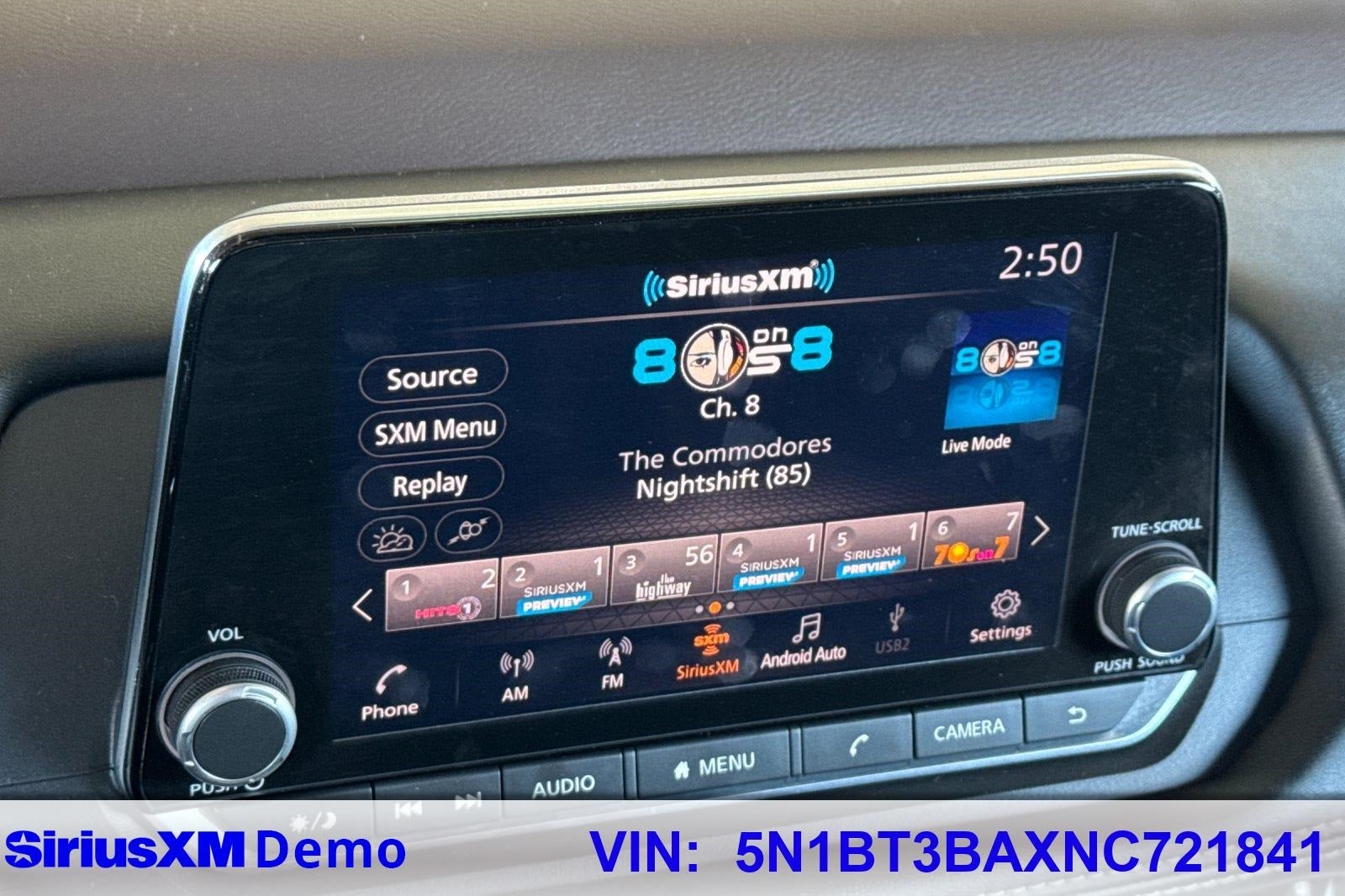 - Radio: AM/FM -inc: 6 speakers, NissanConnect featuring Apple CarPlay and Android Auto, 8" color display w/multi-touch control, SiriusXM satellite radio, 2 illuminated USB connection ports (1 type-A, 1 type-C), Bluetooth® hands-free phone system, streaming audio via Bluetooth® and hands-free text messaging assistant